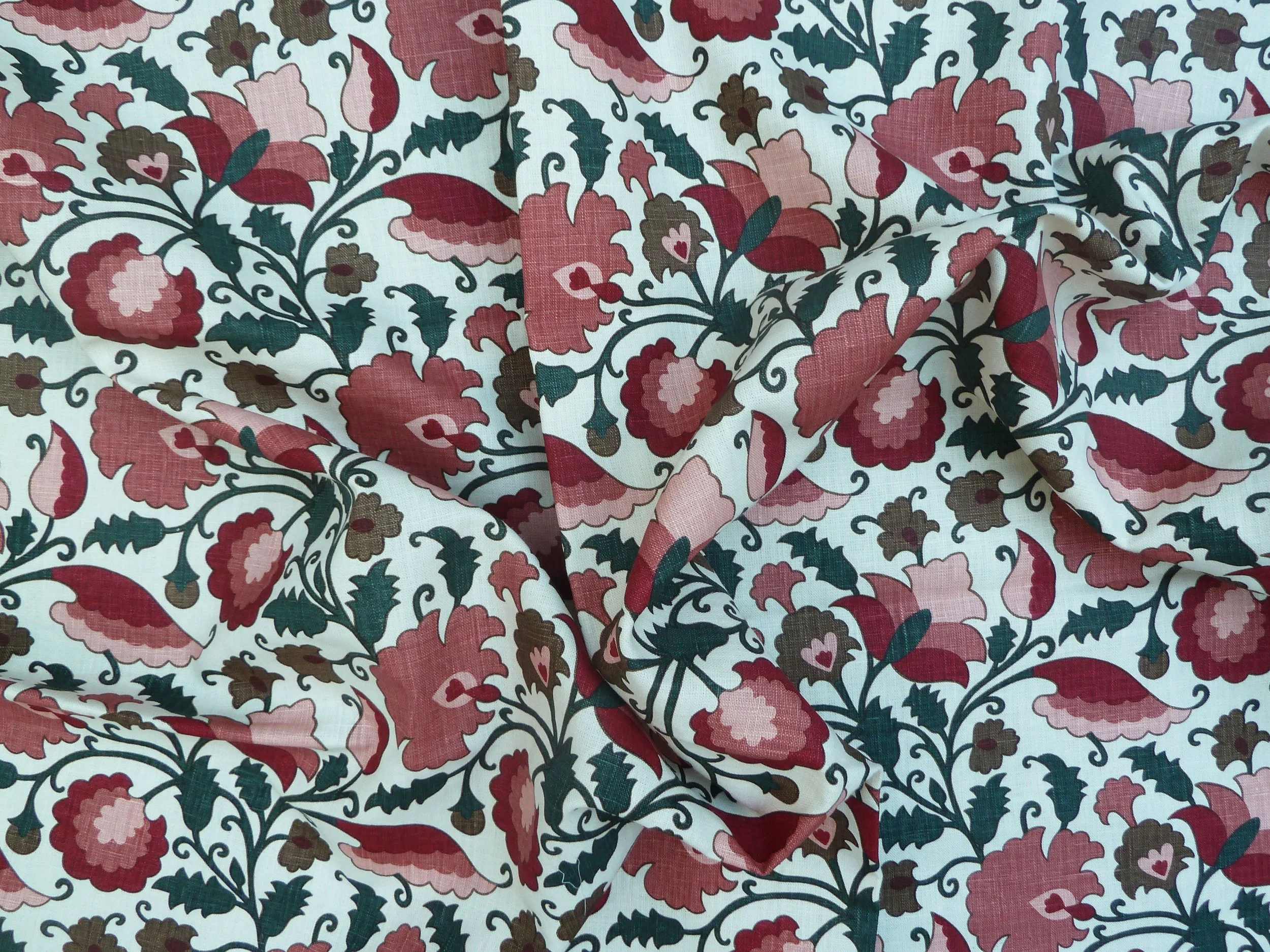 The designs are hand-drawn and painted in watercolours by Charlotte, before being turned into larger repeating patterns the old-fashioned way with tracing paper. They are then engraved onto silk screens in India, and screen-printed by hand in small batches on the finest quality linen.